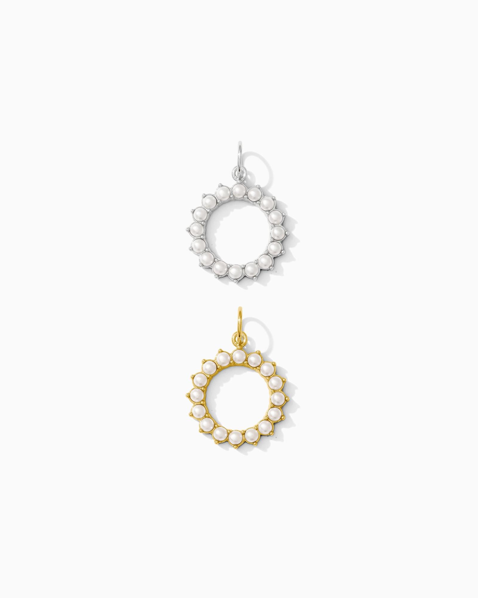 Simulated white pearl open circle charm