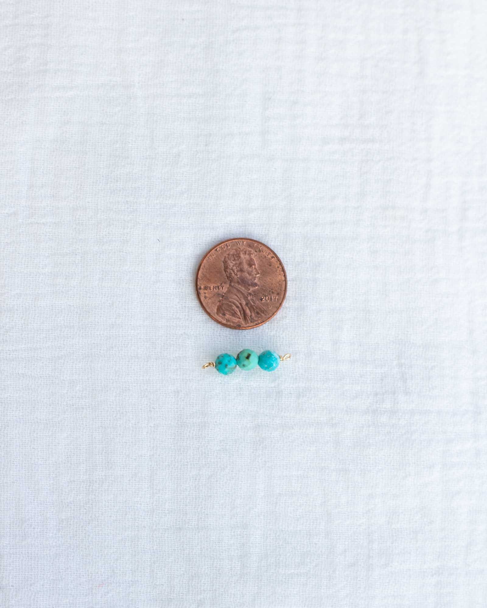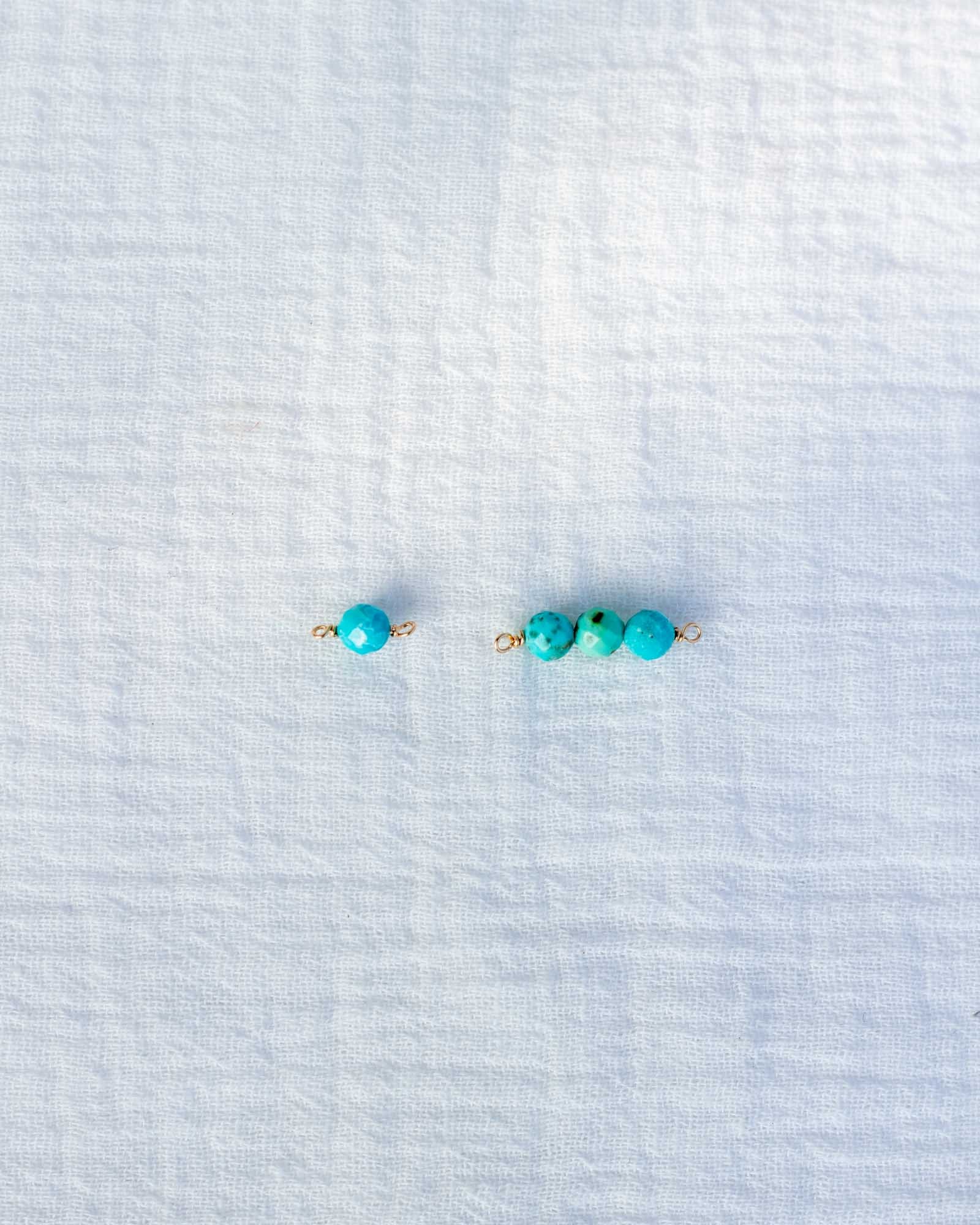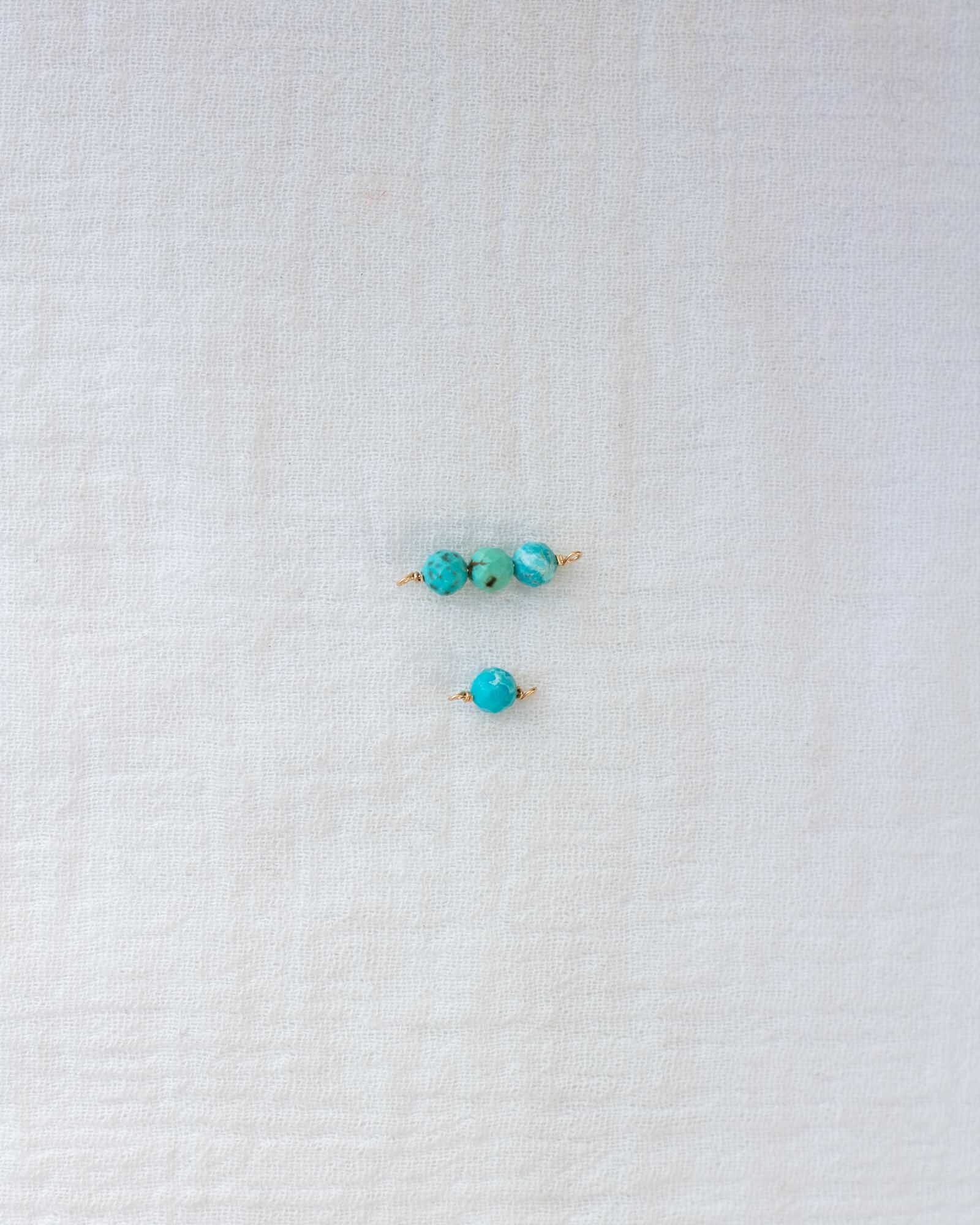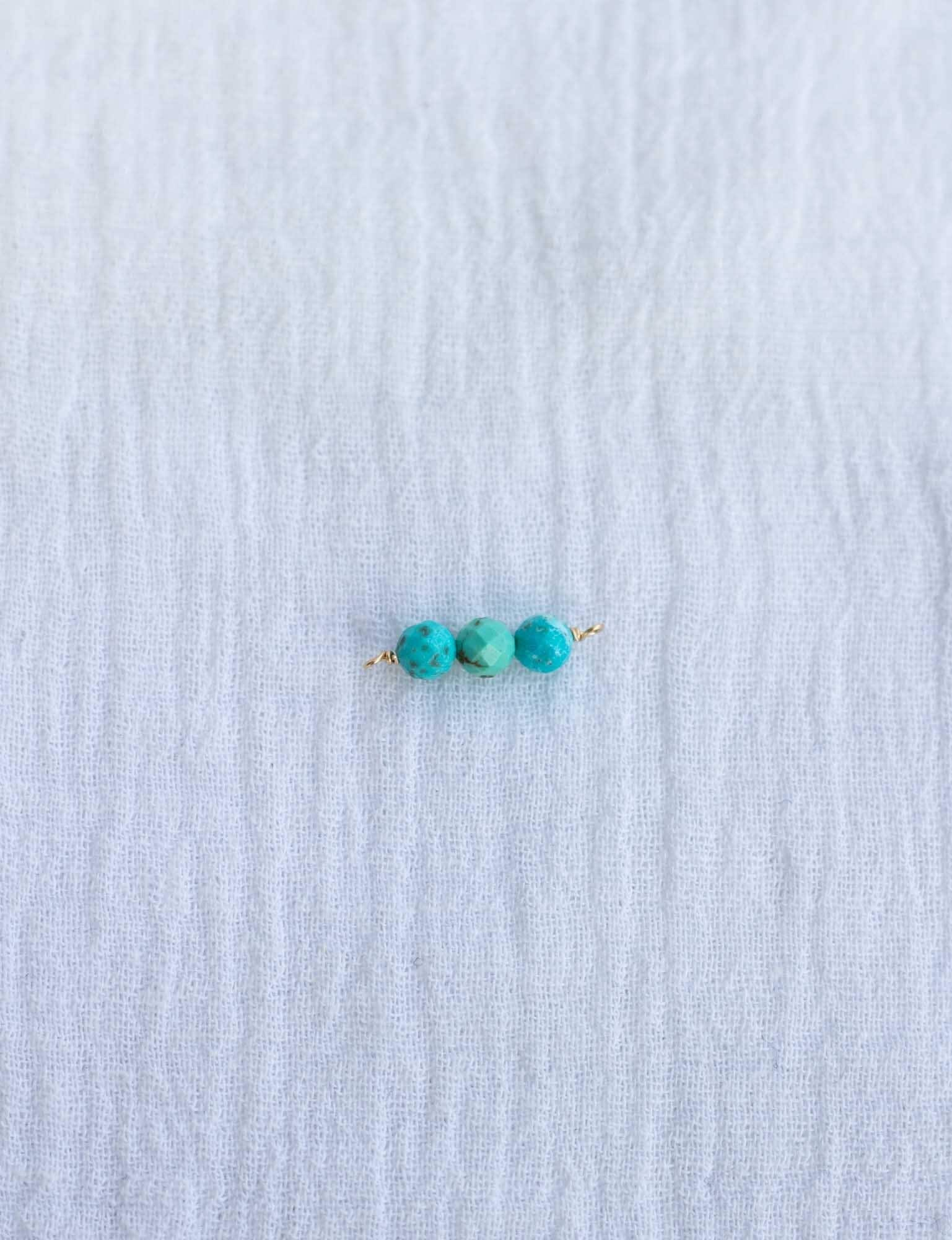 Genuine turquoise triple round bead facet cut connector.