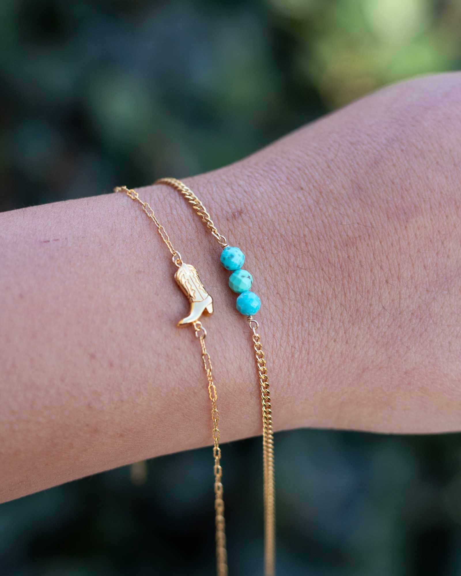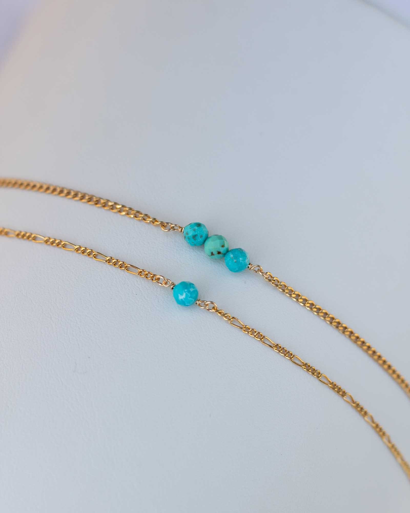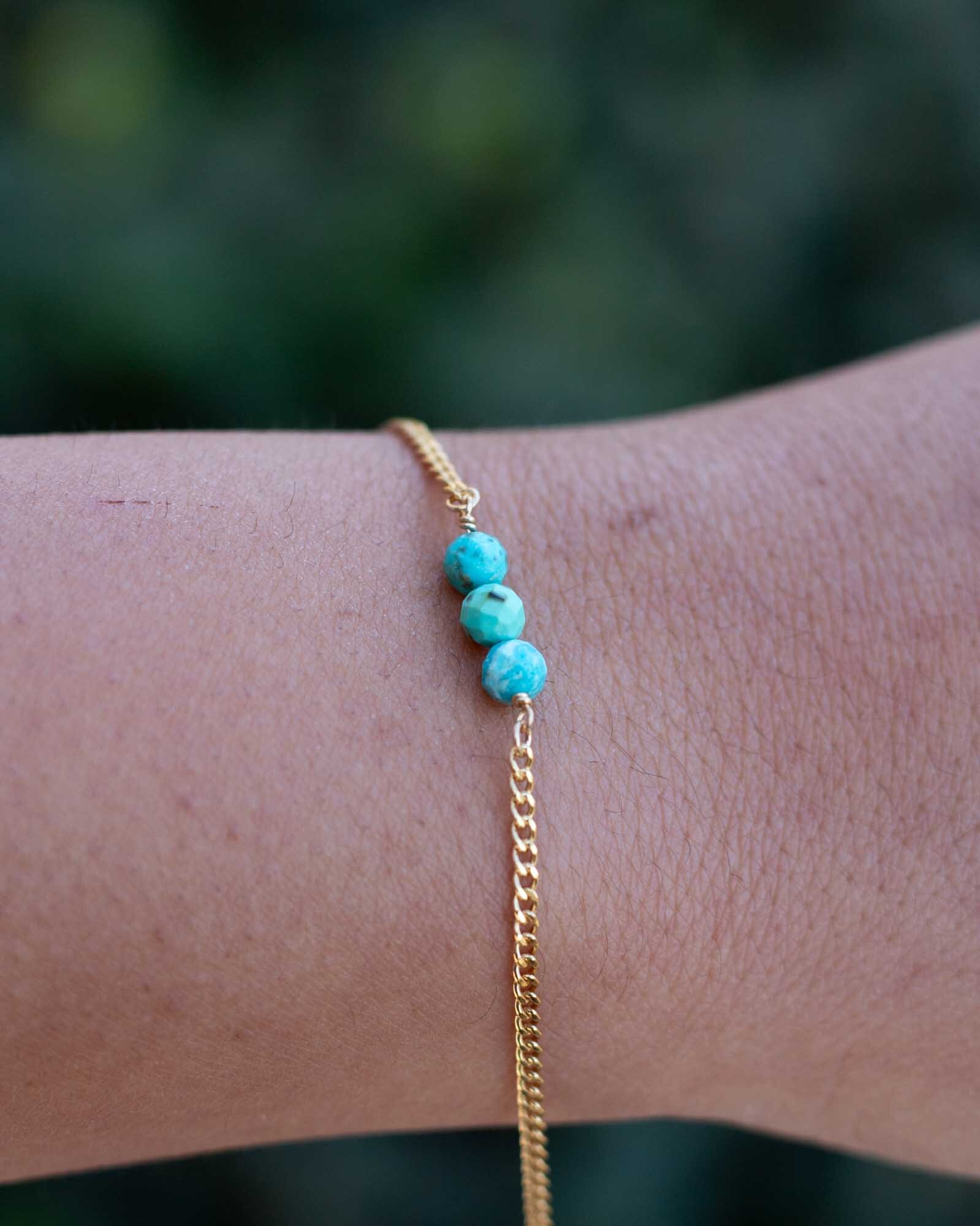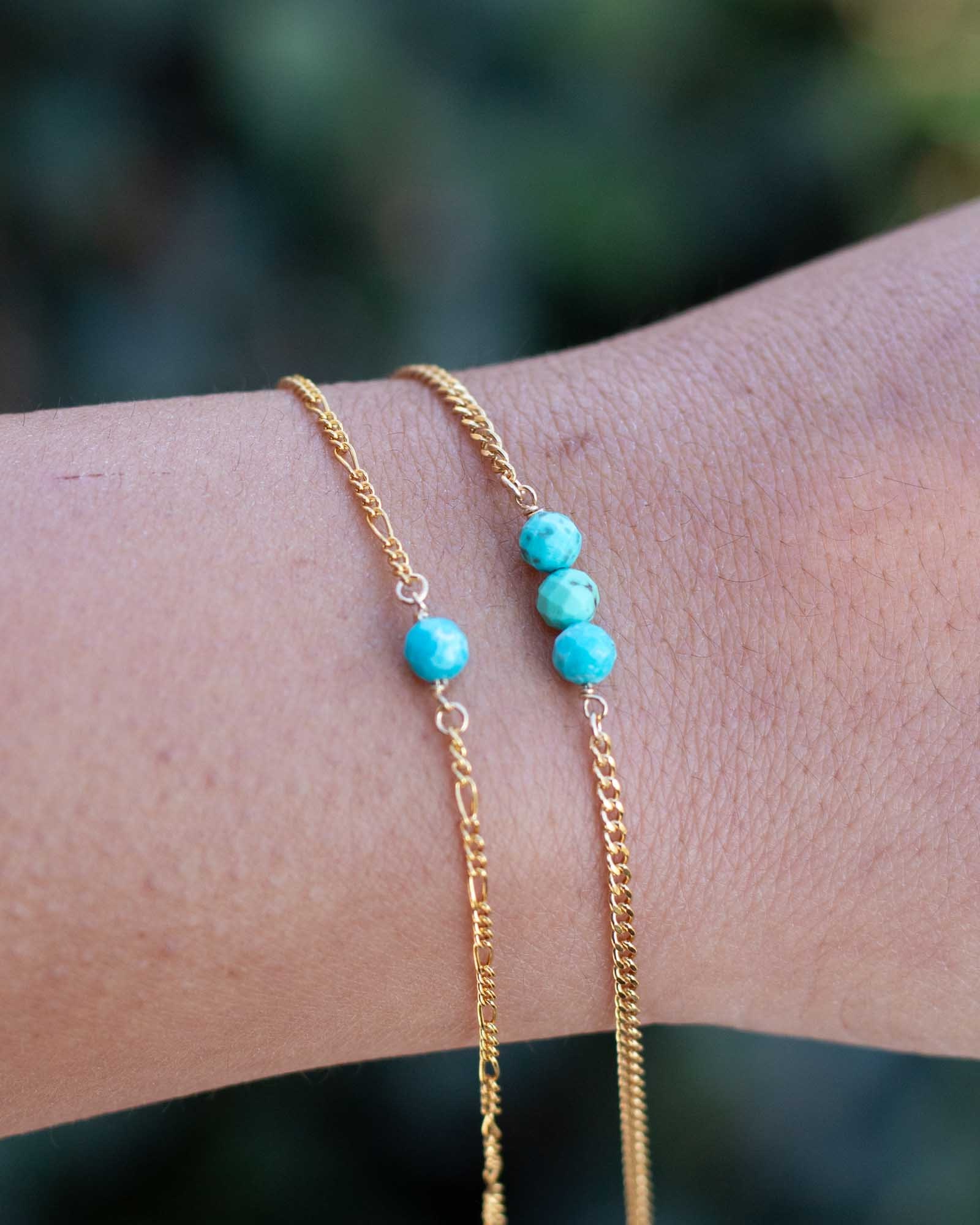 Genuine turquoise triple round bead facet cut connector.