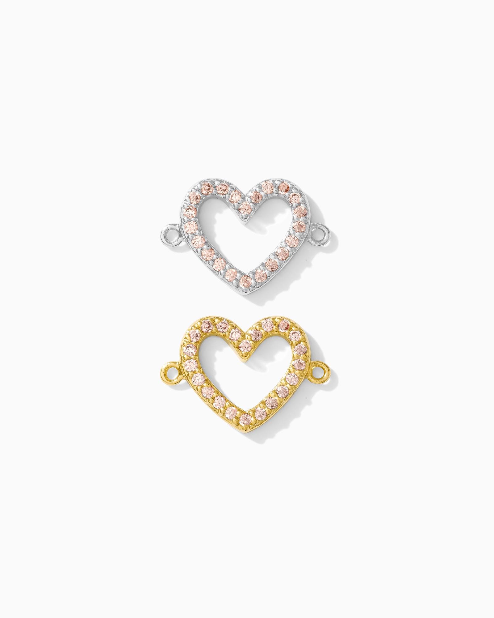 Pave very light pink heart cubic zirconia connector charm