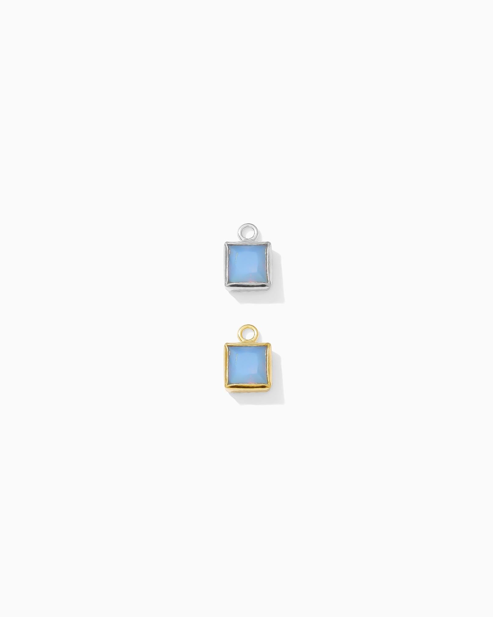 Blue imitation opal square shaped charm in gold filled and sterling silver