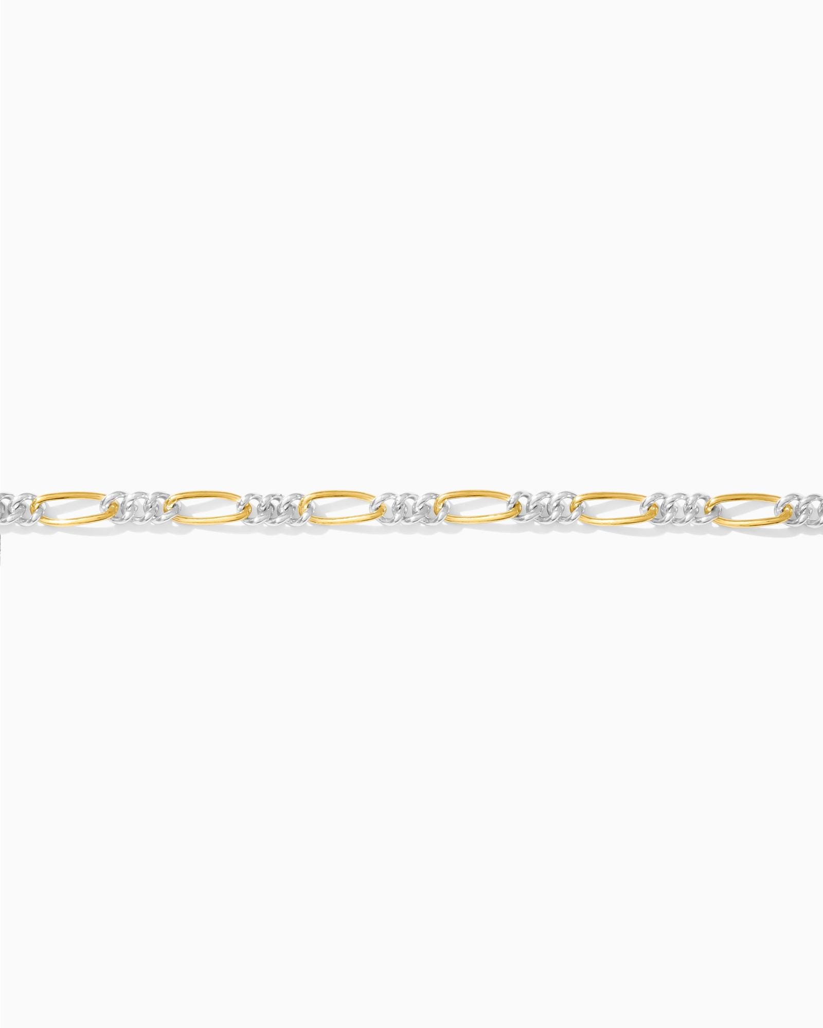Mixed metal figaro 3+1 .925 sterling silver with 14k gold filled (this 14k gold filled item has been gold plated for color uniformity).