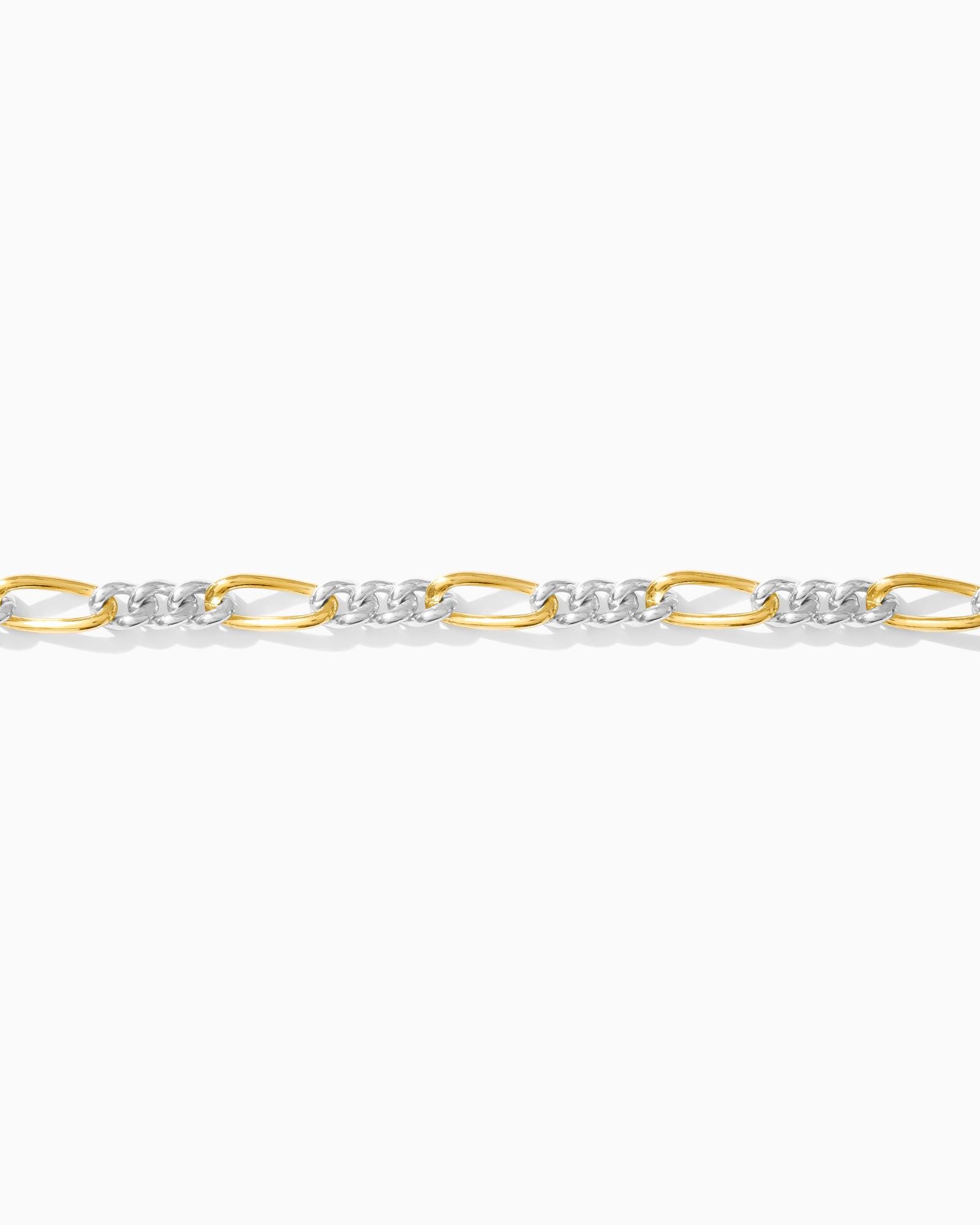 Mixed metal figaro 3+1 .925 sterling silver with 14k gold filled (this 14k gold filled item has been gold plated for color uniformity).