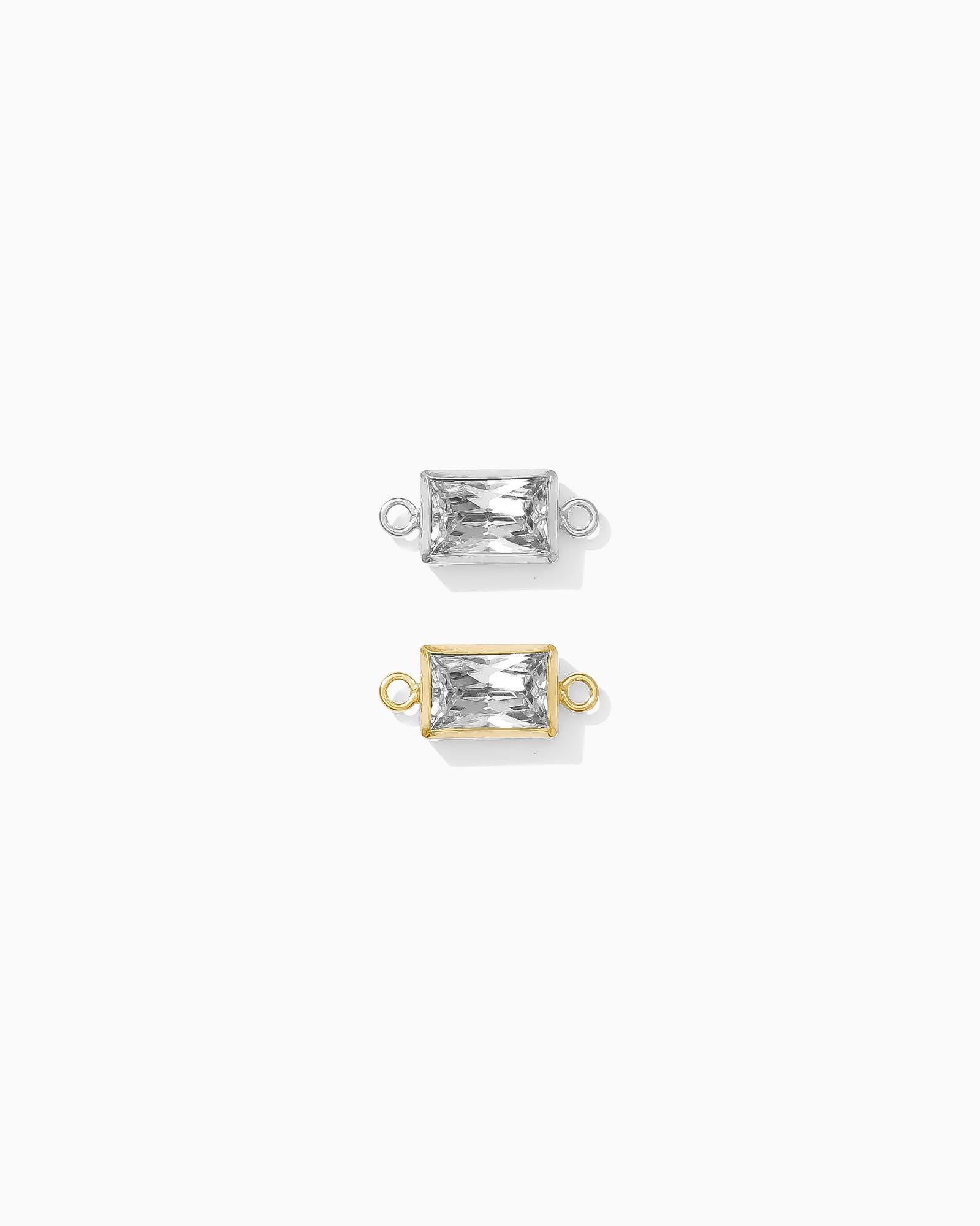4x6mm white cz rectangle bezel connector with 2mm closed ring