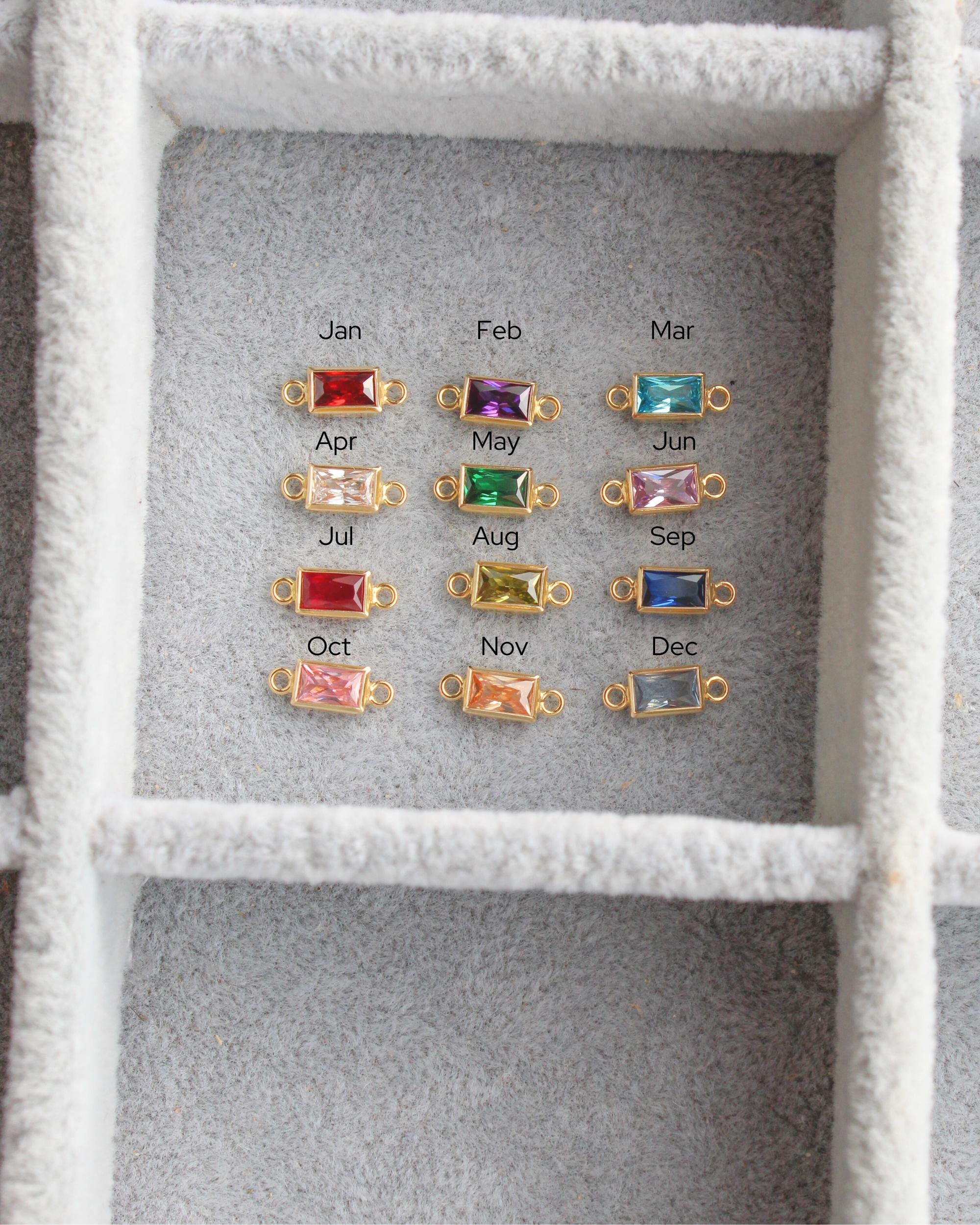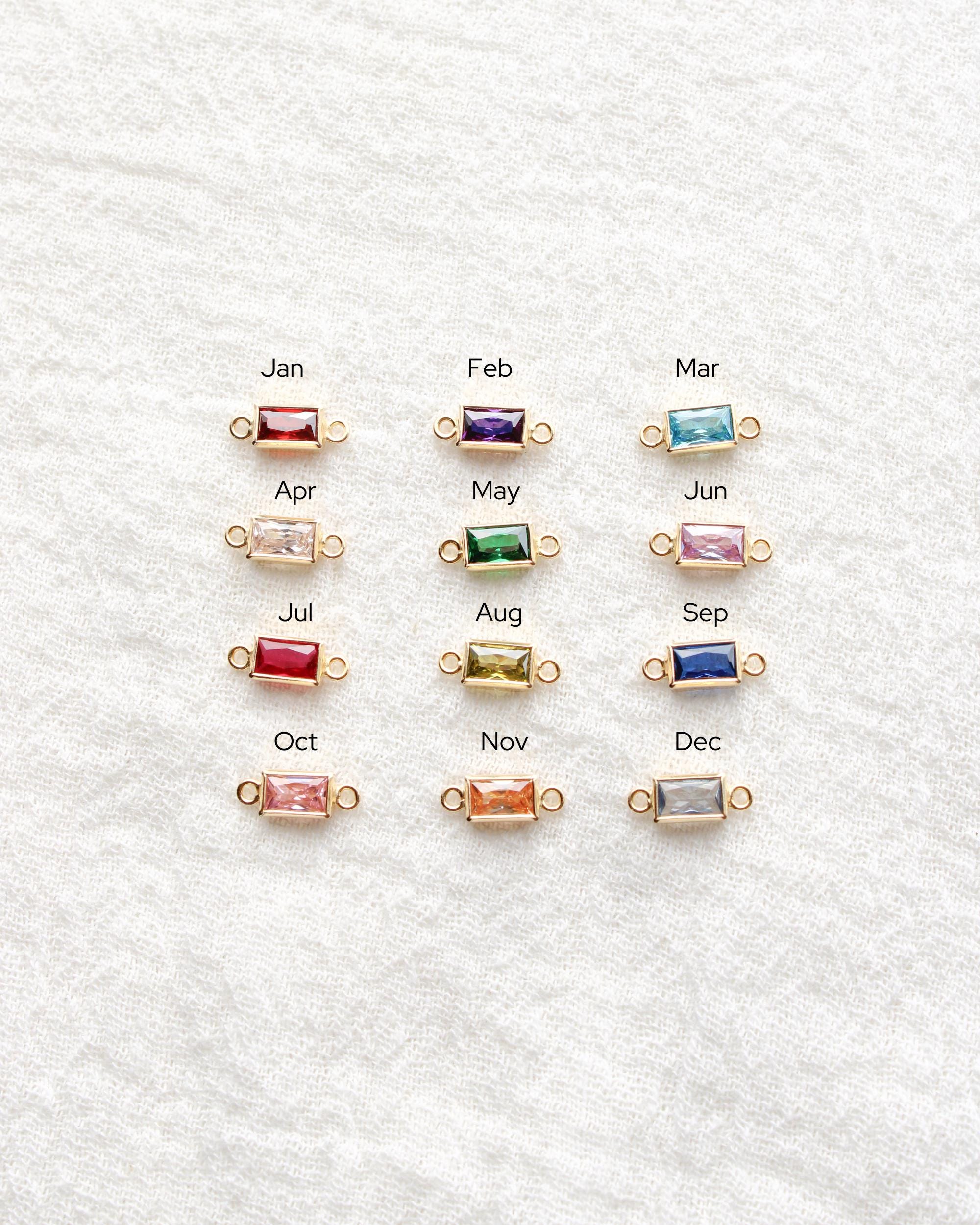 3mm rectangle bezel birthstone connector with 2mm closed ring
