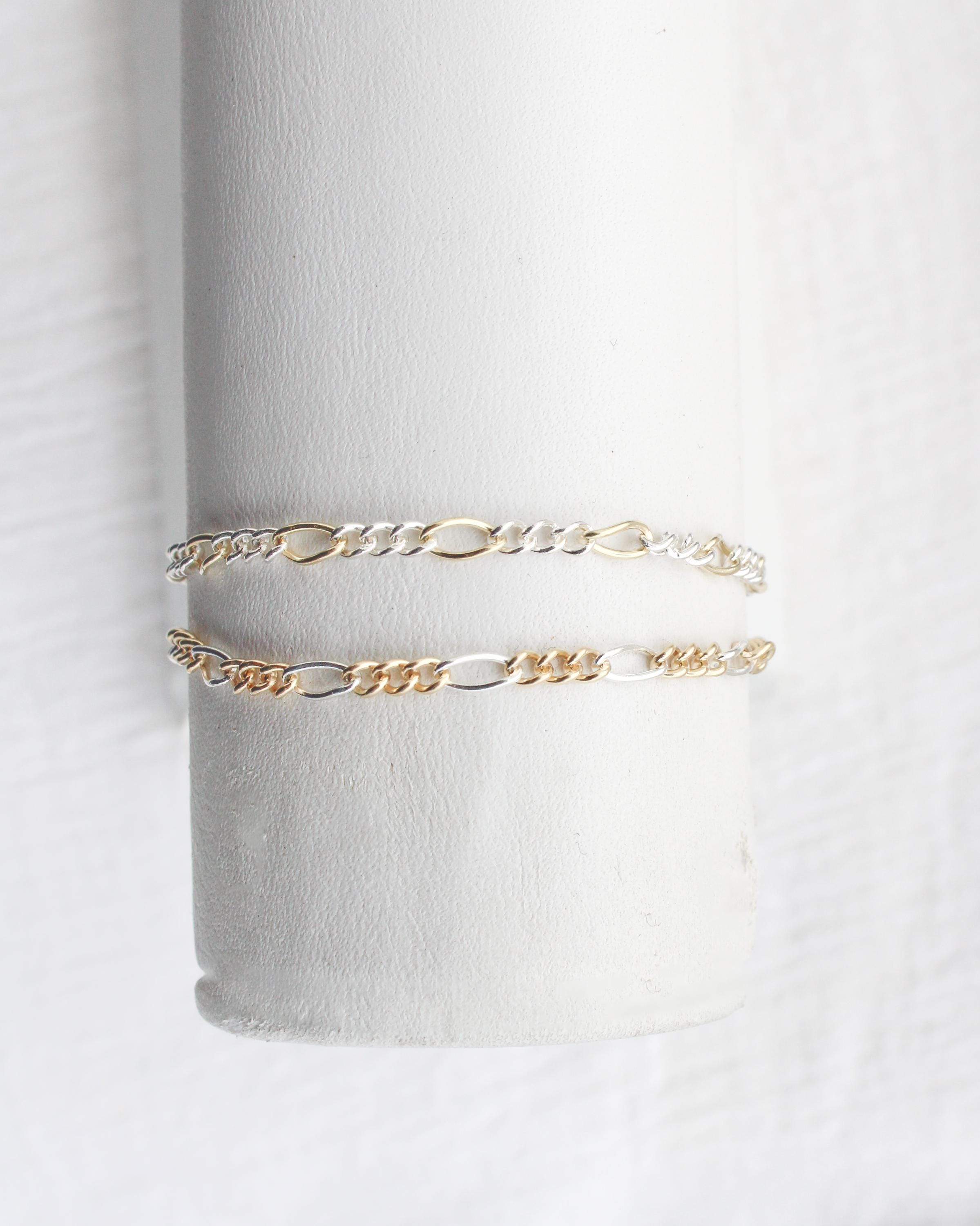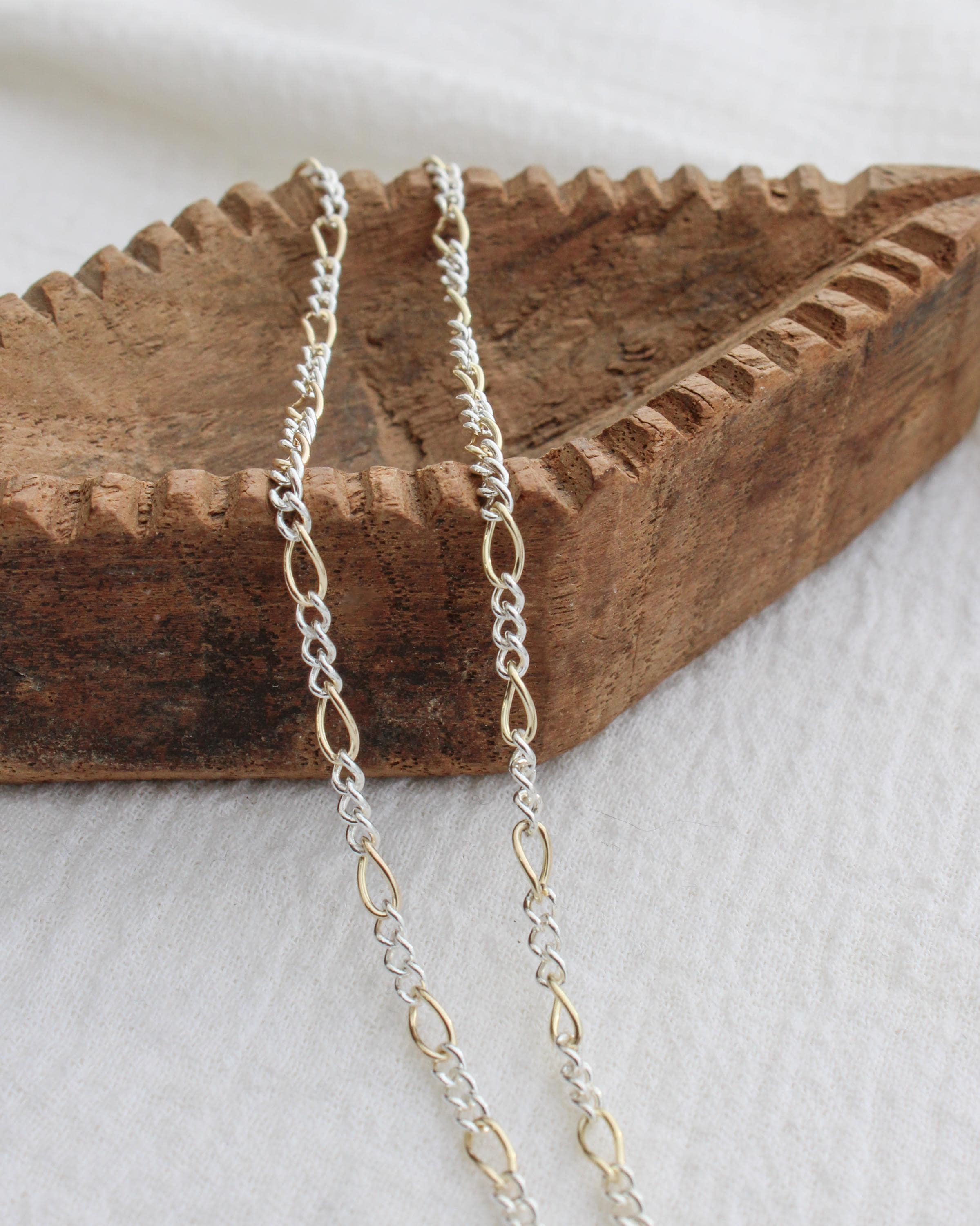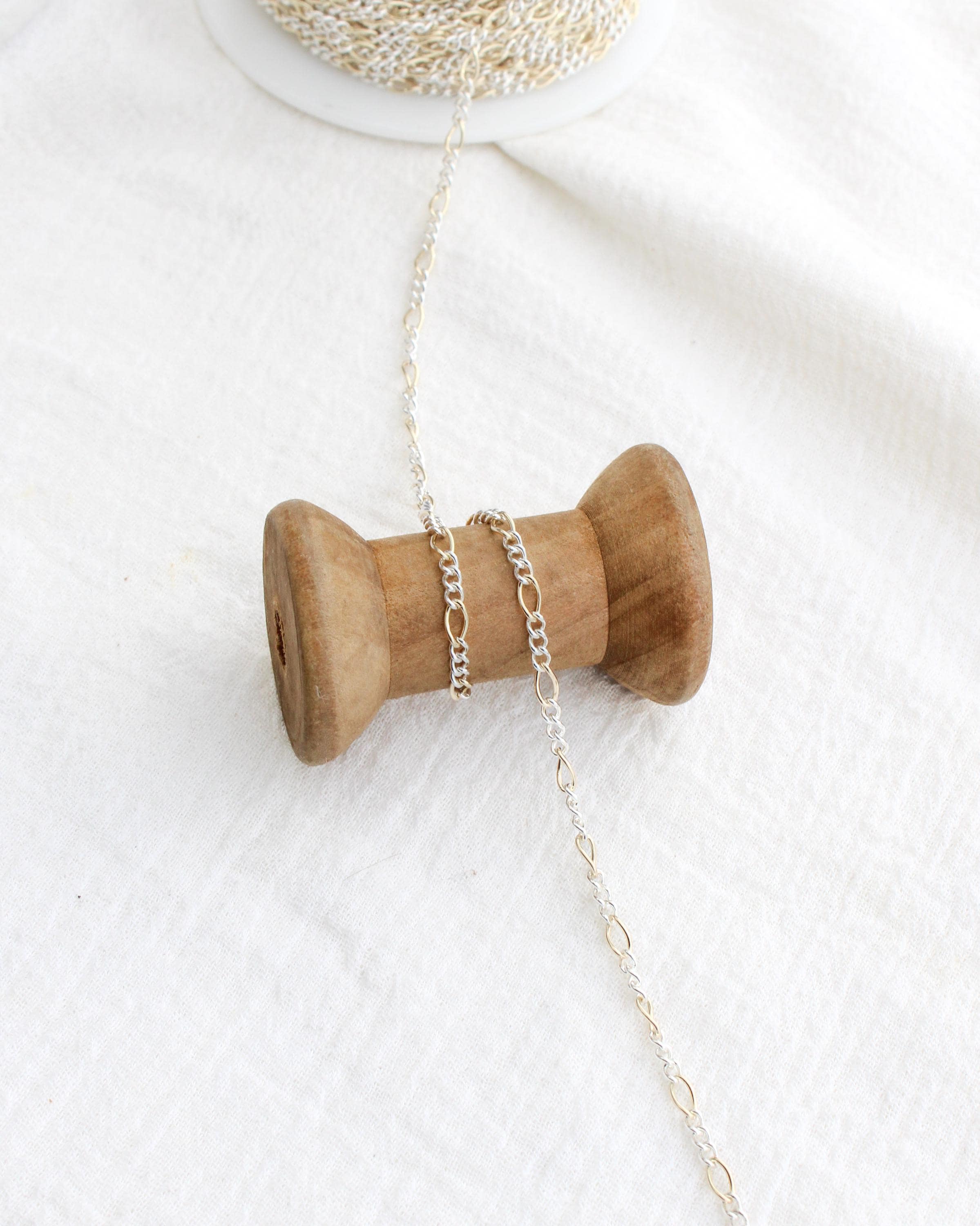 Unfinished 2.6mm 1+3 mixed metal chain, 14k gold filled with 3 silver links,