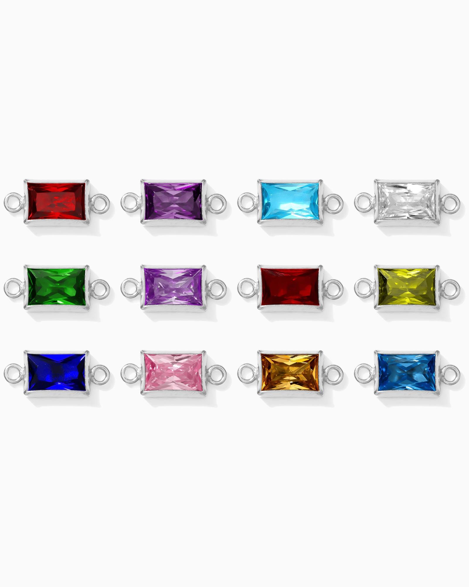 4x6mm birthstone cz rectangle bezel connector with 2mm closed ring