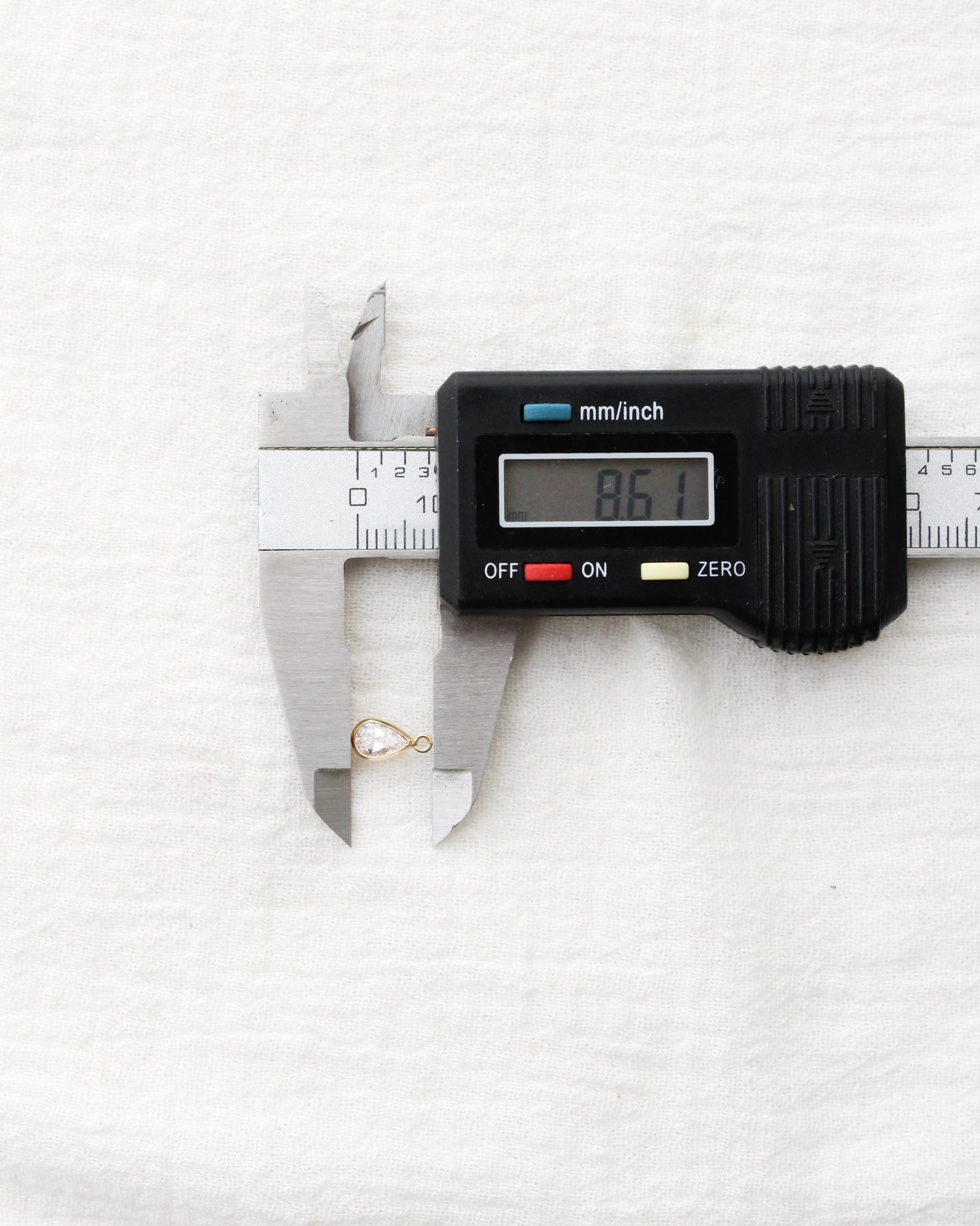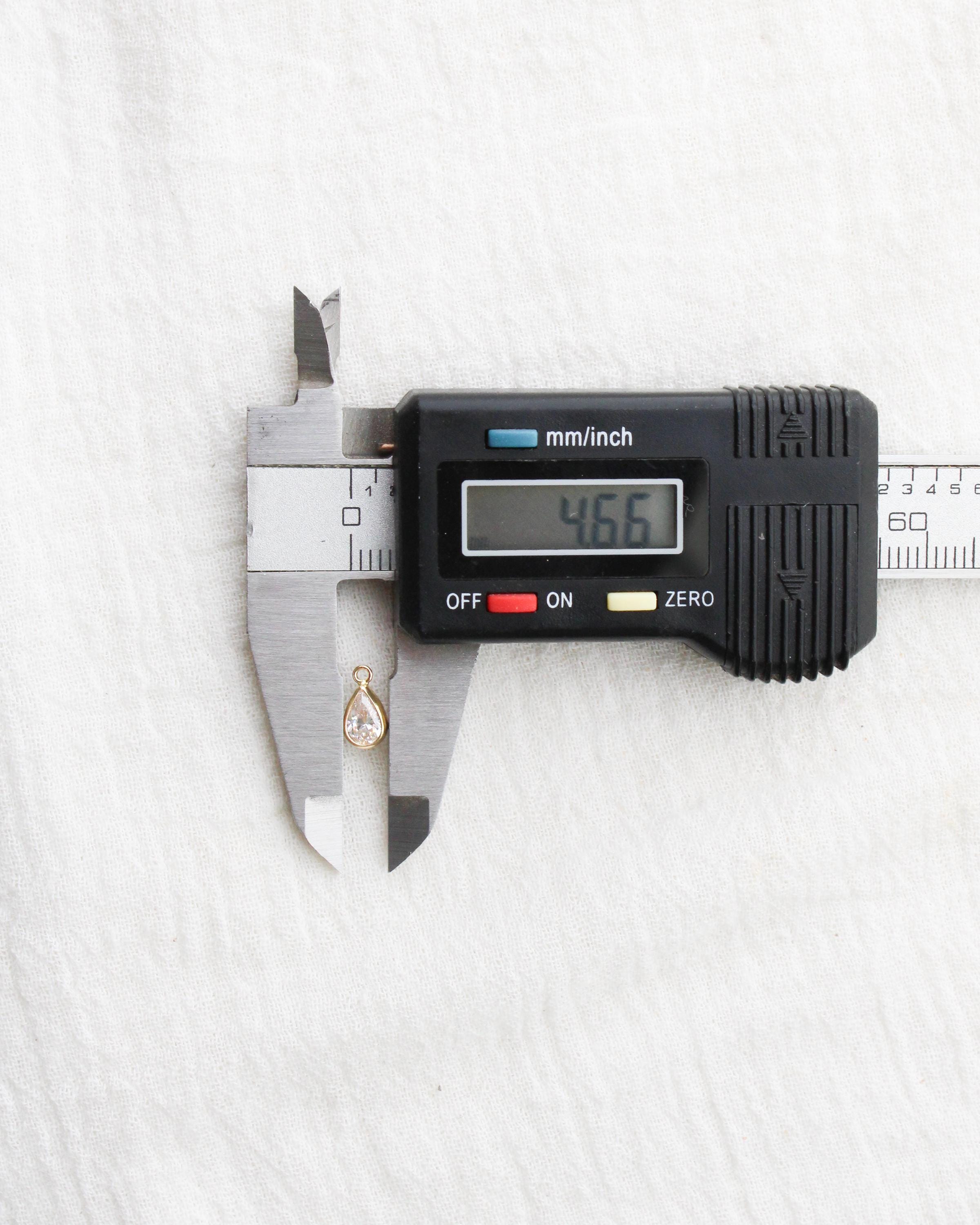Total length: 4mm teardrop shaped bezel charm with 2mm closed ring