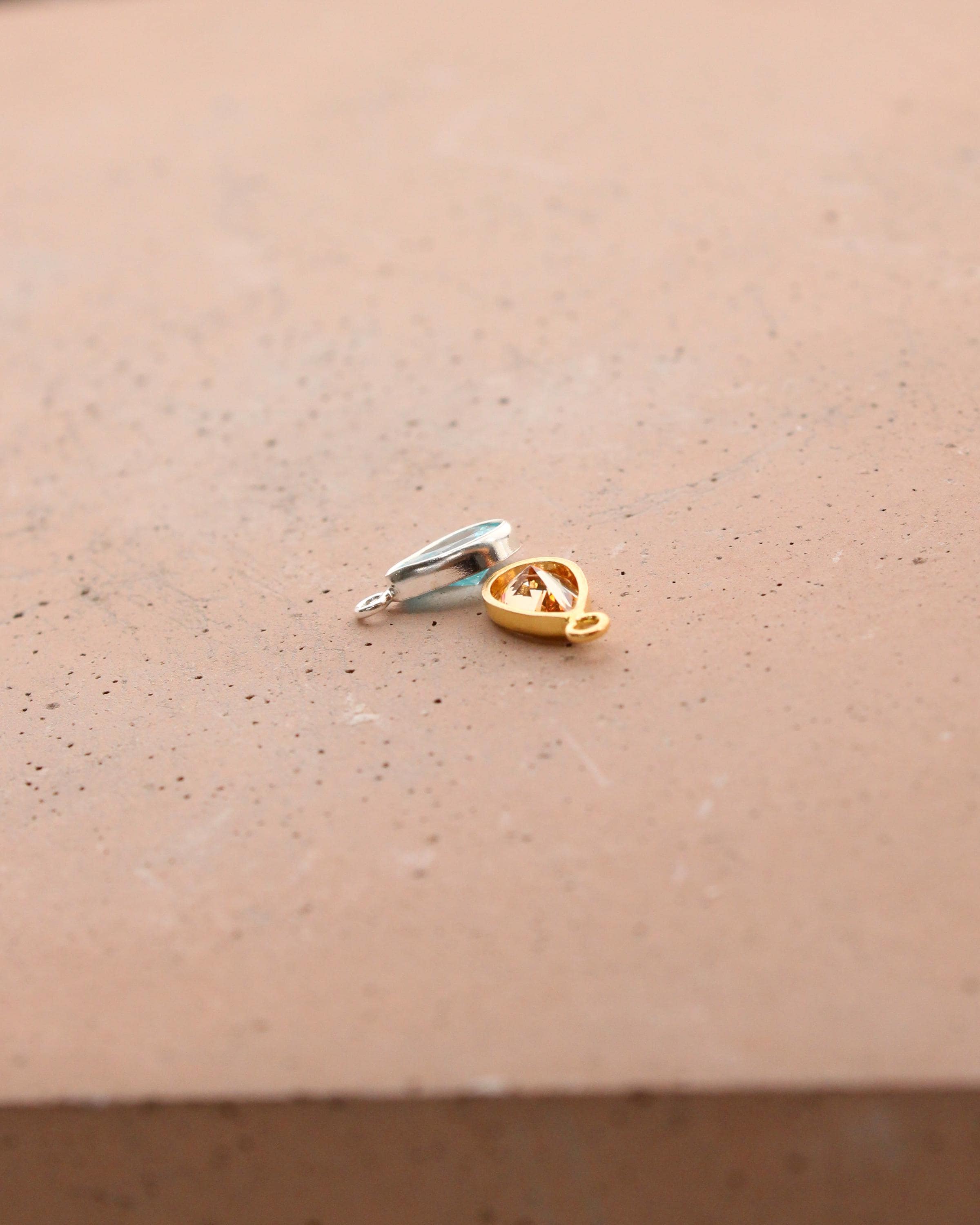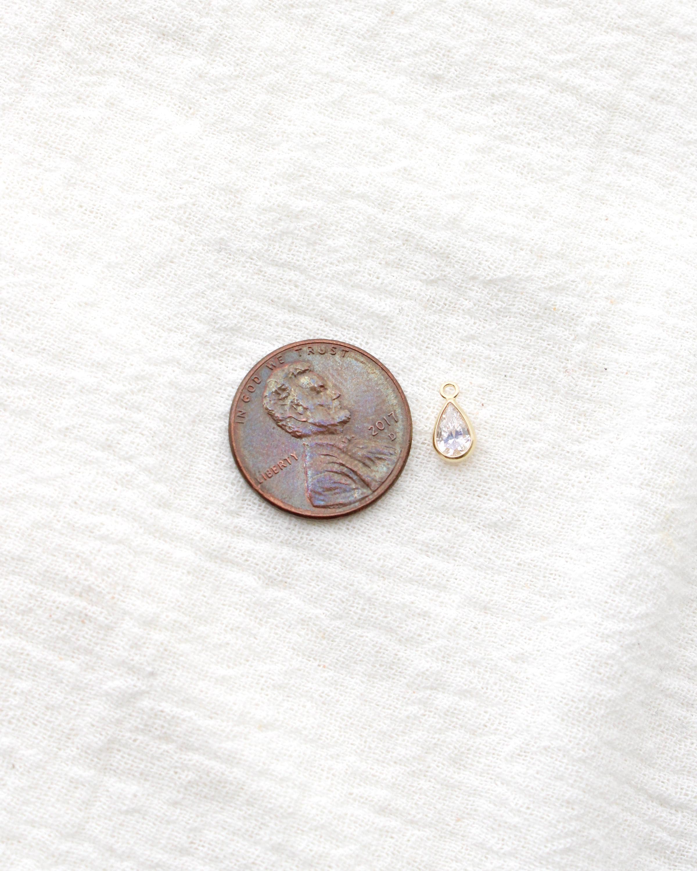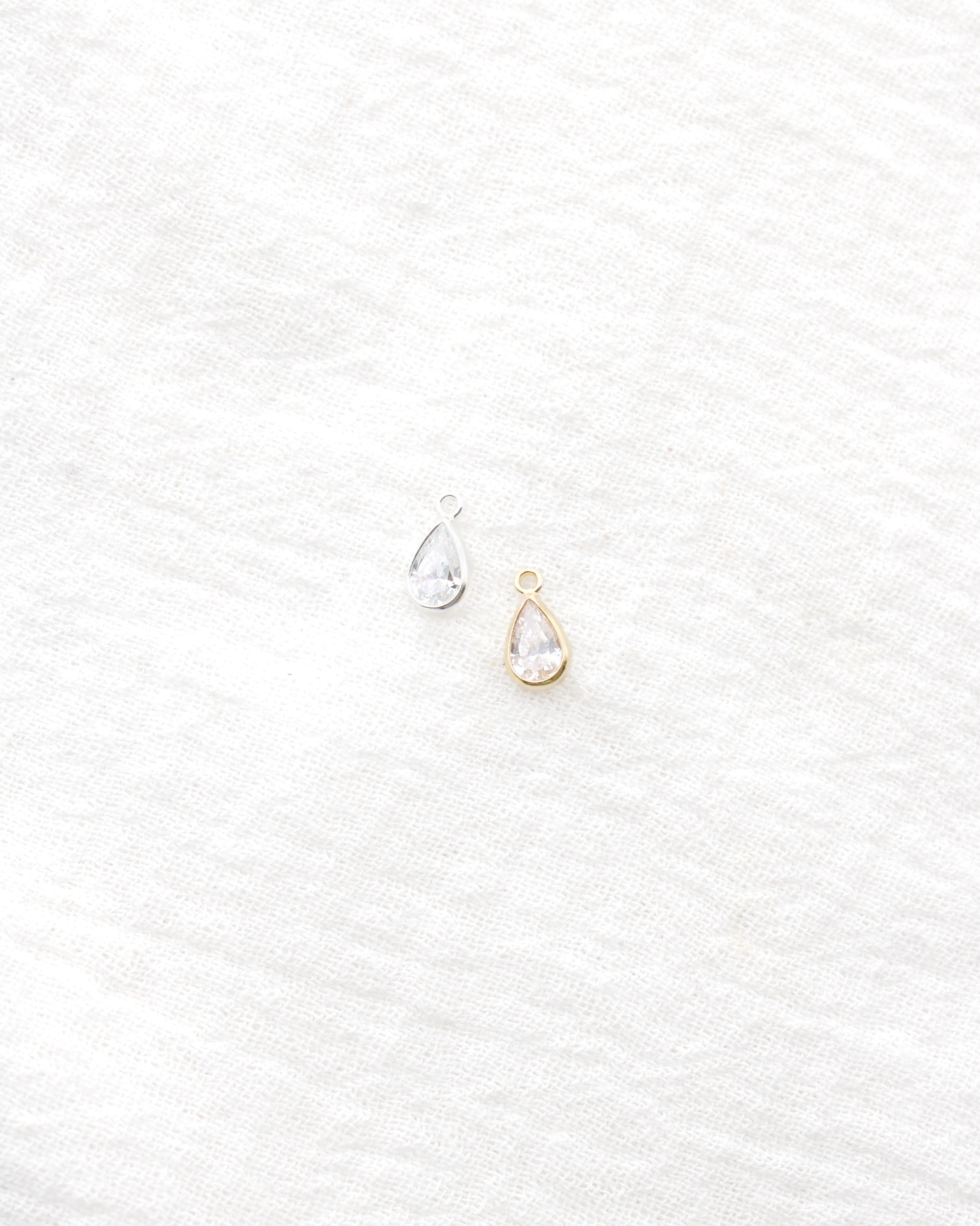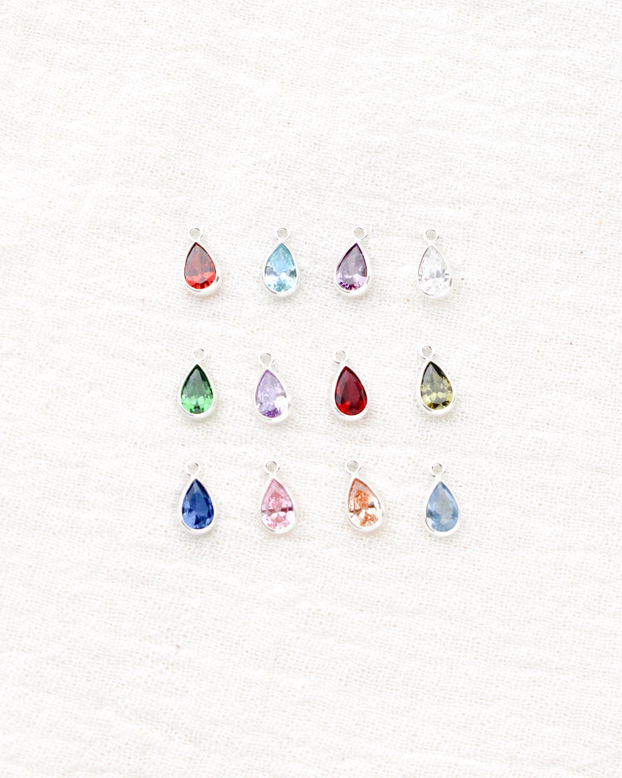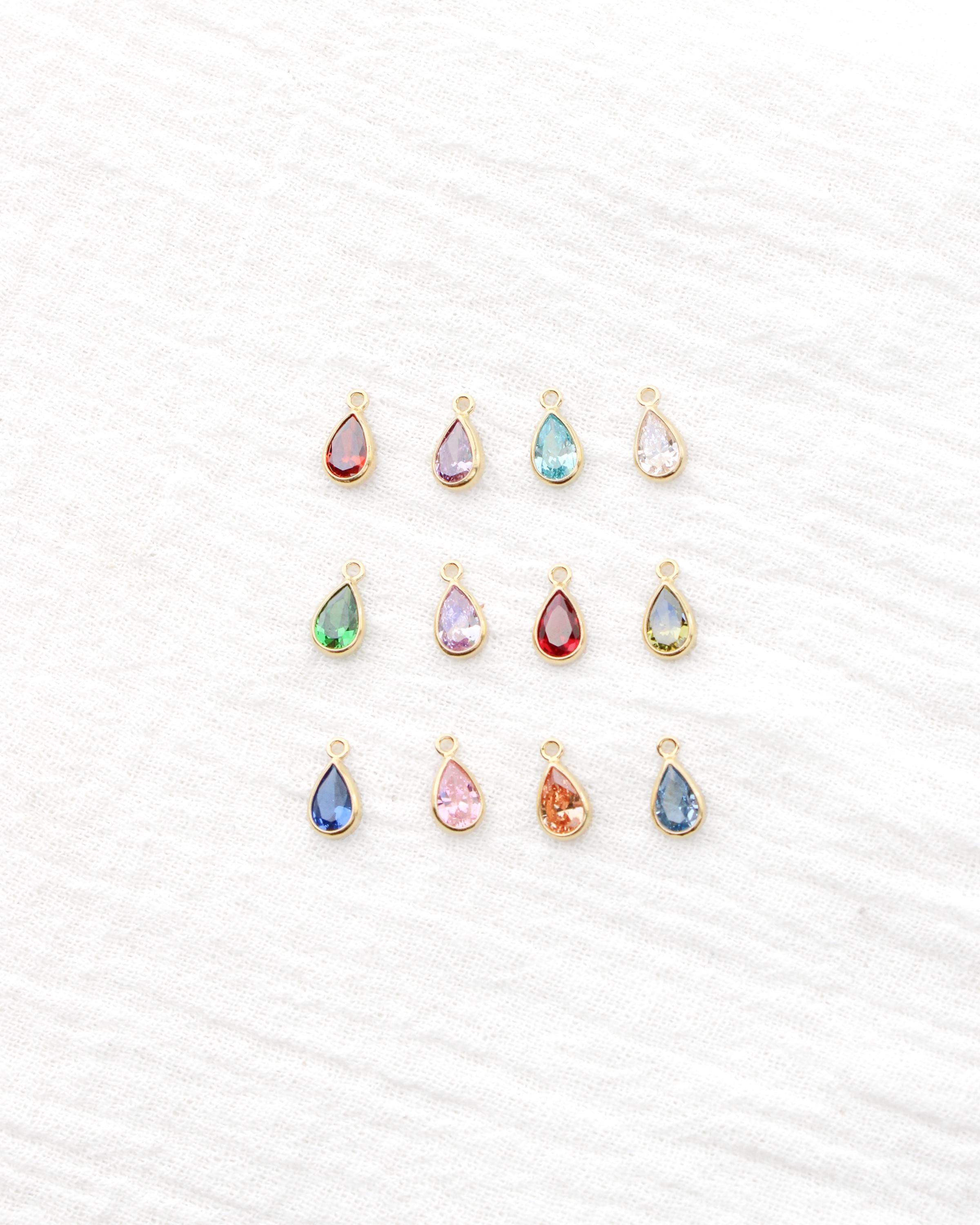Cubic zirconia teardrop birthstone colored charms in gold filled and sterling silver