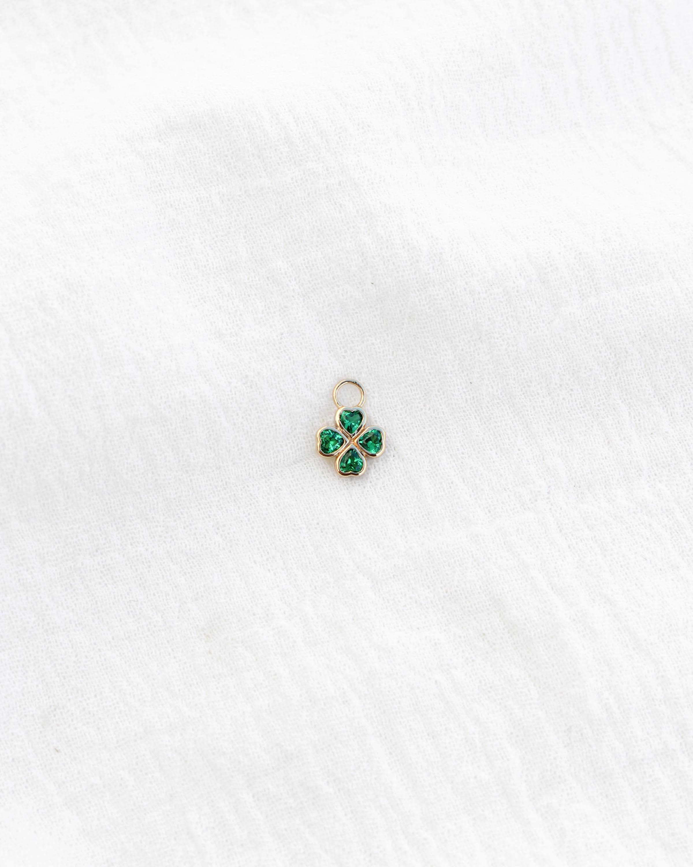 Emerald green nano gem four heart clover charm